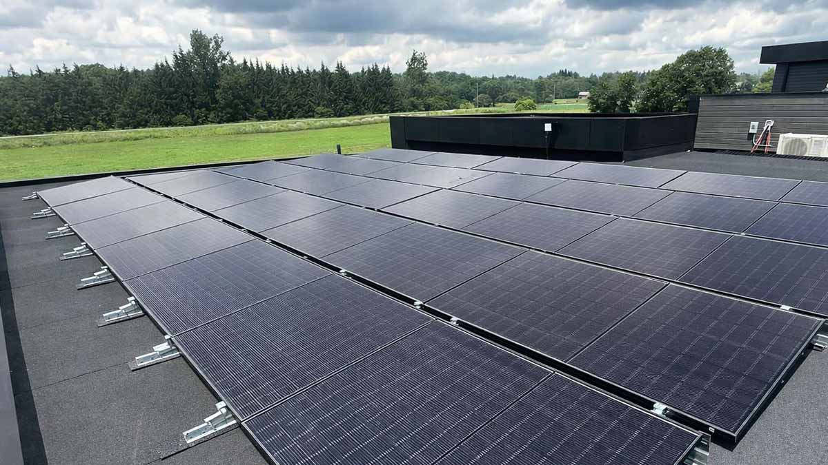 In winter, snow covering the panels can temporarily reduce production by blocking sunlight. However, solar panels are typically installed at an angle, allowing snow to slide off naturally as temperatures rise or sunlight warms the surface. Even on flat roofs, panels are mounted on angled racking systems to promote snow shedding and maintain efficient energy production.
